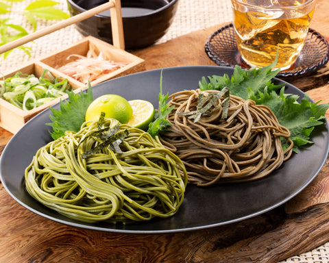 Tea SobaCarefully and diligently produced over the course of two days in a special low temperature heating chamber, this soba boasts a smooth texture with hints of fragrant matcha and hojicha flavors. It is a discerning tea soba featured in many of the teahouses in Uji.